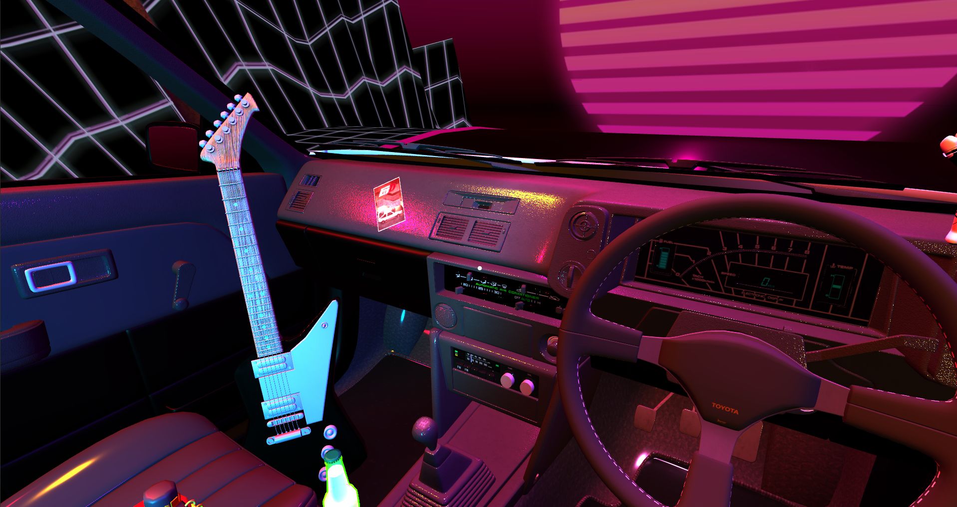 The game requires minimal interaction from the player - you don’t need to steer, accelerate or brake the car. Instead, you can sit back, relax and enjoy the ride. The car will drive by itself, as you immerse yourself in the retro-futuristic visuals of the highway and the pulsing sounds of synthwave.